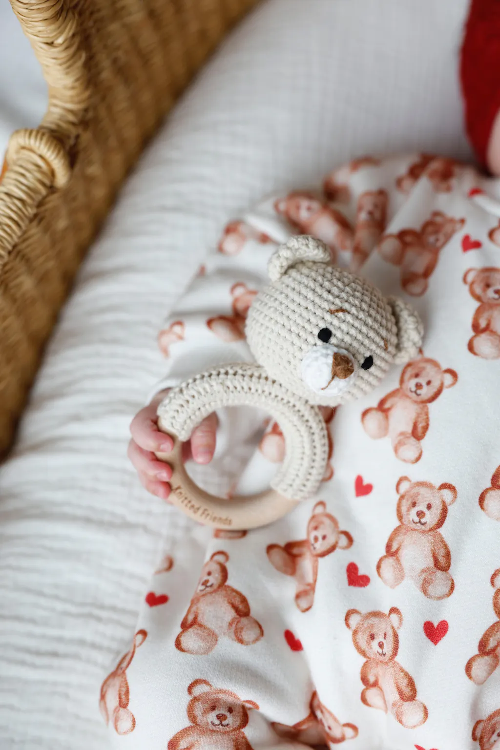 Hand-crocheted bear rattle toy